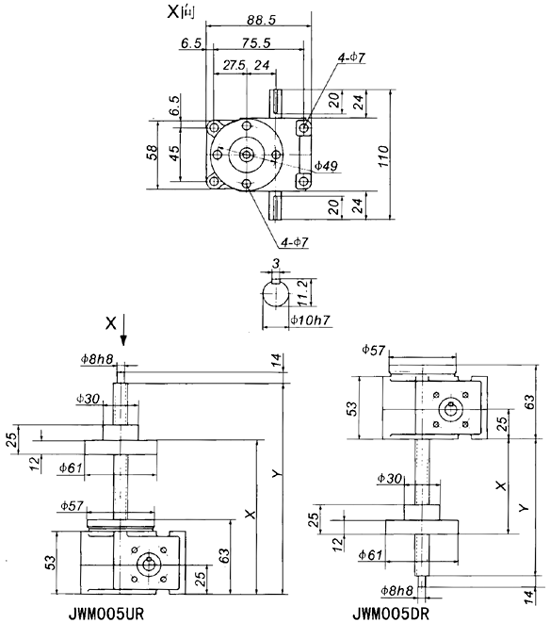 | 當(dāng)前位置:減速機(jī)首頁(yè) >> 產(chǎn)品大全 >> 升降機(jī) >> JW螺旋升降機(jī) >> JWM005絲杠升降機(jī)外形尺寸表 |