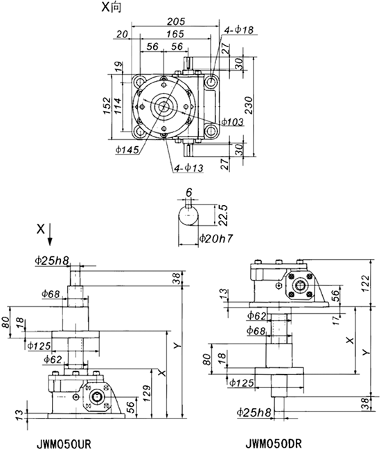 | 當前位置:減速機首頁 >> 產(chǎn)品大全 >> 升降機 >> JW螺旋升降機 >> JWM050絲杠升降機外形尺寸表 |