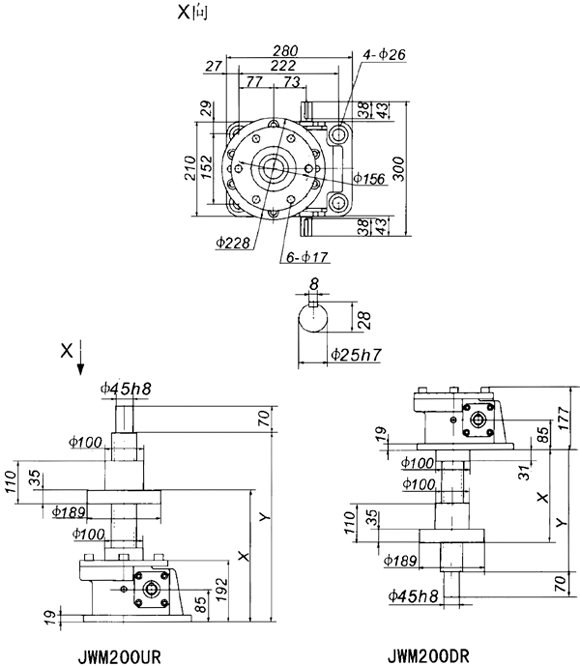 | 當(dāng)前位置:減速機(jī)首頁 >> 產(chǎn)品大全 >> 升降機(jī) >> JW螺旋升降機(jī) >> JWM200絲杠升降機(jī)外形尺寸表 |