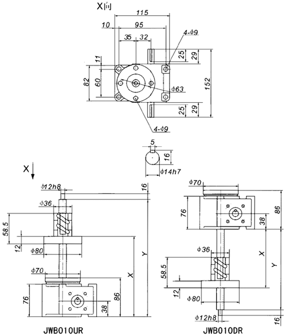 | 當(dāng)前位置:減速機(jī)首頁 >> 產(chǎn)品大全 >> 升降機(jī) >> JW螺旋升降機(jī) >> JWB010絲杠升降機(jī)外形尺寸表 |