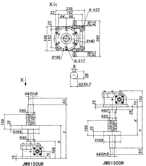 | 當前位置:減速機首頁 >> 產(chǎn)品大全 >> 升降機 >> JW螺旋升降機 >> JWB150絲杠升降機外形尺寸表 |