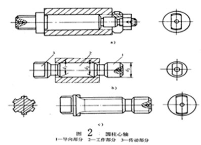 圖2c是花鍵心軸,用于加工以花鍵孔定位的工件,當(dāng)工件定位孔的長(zhǎng)徑比L/d>1時(shí),工件部分可稍帶錐度。鍵心軸時(shí),應(yīng)根據(jù)工件的 沒(méi)定位方式來(lái)確定定位心軸的結(jié)構(gòu),其配合可參考上述兩種心軸。