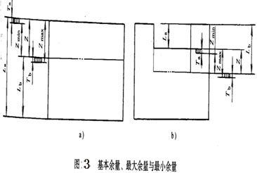 由于毛坯尺寸不可避免地存在公差,因此,無(wú)論是加工總余量還是工序余量實(shí)際上是個(gè)變動(dòng)值,于是加工余量又有基本余量、量大余量和最小余量之分。通常毛坯尺寸按雙向標(biāo)注上、下偏移,工序尺寸按入體原則標(biāo)注極限貪偏差為零,即基本尺寸就是最大極限尺寸;對(duì)包容面下偏差為零,即基本尺寸就是最小極限尺寸。
