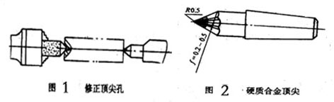 用硬質(zhì)合金頂尖修研頂尖孔圖2所示為修研頂尖孔的硬質(zhì)合金頂尖,其結(jié)構(gòu)特點(diǎn)是在60度圓錐此刃帶具有微量切削作用,對(duì)頂尖孔幾何形狀有修正和擠光作用。這種方法生產(chǎn)率高,但質(zhì)量稍差,多用地普通軸頂尖孔修研,或作為精密軸頂尖孔的精研。