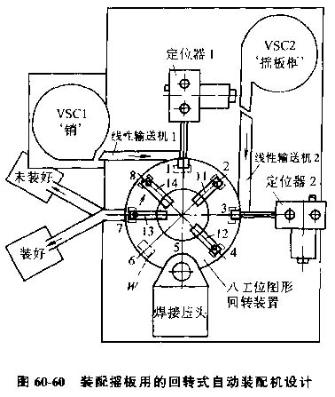 (1)搖板自動裝配機,圖60-59所示的搖板由搖板框及銷組成,用電阻焊聯(lián)接。