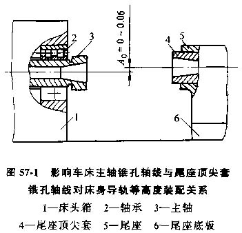 例如,要查明圖57-1所示車床精度標準中主軸錐孔軸線與尾座頂尖套軸線對床身導軌的等高度的裝配尺寸鏈。