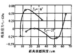 切削碳鋼時,通常在已加工表面層形成殘余拉應(yīng)力,其值可達0.78~0.08GPa,而殘余應(yīng)力層的深度可達0.40~0.50mm。