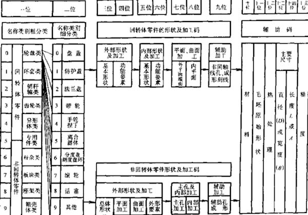 (1)機械零件分類編碼JLBM-1系統(tǒng)JLBM-1分類編碼系統(tǒng)是我國原機械工業(yè)部指定的一套通用零件分類編碼系統(tǒng)(JB/Z251—85),它適用于中等及中等以上規(guī)模的多品種、中小批量生產(chǎn)的機械加工工廠,是這個些工廠在設(shè)計、制造工藝和生產(chǎn)管理等方面實施成組技術(shù)的一種指導(dǎo)性文件。