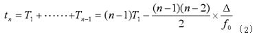 上式分別顯示了脈沖數(shù)n與脈沖頻率fn和時間tn的關(guān)系。令△/f0=δ,即加速階段相鄰兩脈沖周期的減量,則上述公式簡化為: