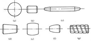 常用的滾動(dòng)體有球、圓柱滾子、滾針、圓錐滾子、球面滾子、非對(duì)稱球面滾子等幾種,如圖9-2所示。軸承內(nèi)、外圈上的滾道,有限制滾動(dòng)體側(cè)向位移的作用。
