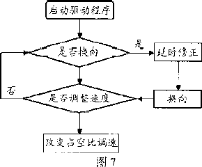 死區(qū)時間的問題,只有在正轉(zhuǎn)變?yōu)榉崔D(zhuǎn)的時候才存在,而在正轉(zhuǎn)啟動或反轉(zhuǎn)啟動的時候并沒有,因此不需要修正。如果開關(guān)管的開通和關(guān)斷時間非常小,或者在硬件電路中增加延時環(huán)節(jié),都可以降低開關(guān)管的損耗和發(fā)熱。當(dāng)然,通過軟件避免直通短路是最好的辦法,它的操作簡單,控制靈活。通過軟件實現(xiàn)死區(qū)時間,就是在突然換向的時候,插入一個延時的環(huán)節(jié),待開關(guān)管關(guān)斷之后,再開通應(yīng)該開通的開關(guān)管。圖7為利用軟件修正死區(qū)時間的流程圖,在開關(guān)管每次換向的時候,不立即進行方向的切換,而是先使開關(guān)管關(guān)斷一段時間,使其完全關(guān)斷后再換向打開另外的開關(guān)管。這個關(guān)斷時間由單片機軟件延時實現(xiàn)。