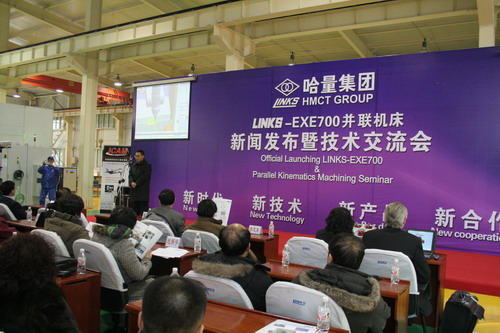 據(jù)哈量集團董事長魏華亮介紹,這款新一代LINKS-EXE700并聯(lián)機床是哈量集團引進瑞典愛克斯康(EXECHON)公司并聯(lián)機床技術,通過消化吸收及再創(chuàng)新而設計制造的具有國際領先水平的產(chǎn)品。這種機床具有剛性高、動態(tài)及高速性能好、加工范圍大等特點,一次裝夾即可實現(xiàn)5到6面及全部復合角度的位置加工,特別適用于敏捷加工或復雜異型件及復合角度孔和曲面的加工等。