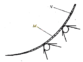 誤差分析在數(shù)控車床使用過程中,為了降低被加工工件表面的粗糙度,減緩刀具磨損,提高刀具壽命,通常將車刀刀尖刃磨成圓弧,圓弧半徑一般在0.4~1.6mm之間。如圖1所示,采用試切法對(duì)刀時(shí)由A、B兩點(diǎn)分別確定刀架中心的X、Z位置。這樣,加工程序所描述的刀位點(diǎn)是P點(diǎn),數(shù)控系統(tǒng)將控制P點(diǎn)的運(yùn)動(dòng)軌跡,而在切削時(shí)實(shí)際起作用的切削刃則是刀尖圓弧上的各切點(diǎn),這勢必會(huì)產(chǎn)生加工表面的形狀誤差。在車削外圓、內(nèi)孔及端面時(shí),這個(gè)誤差為零。而在加工弧面和錐面時(shí),這個(gè)誤差就很明顯。圖1零件SR10-0.04球面加工的誤差分析見圖2。圖中M線為加工程序所描述的P 的軌跡,即工件的理想尺寸,而實(shí)際加工后的輪廓是N線,陰影就是少切削部分,即加工誤差。假設(shè)刀尖圓弧半徑為r=0.4mm,理論分析表明,N線是半徑為R-r=9.6的圓弧,M、N兩圓弧圓心X、Z向均相距r=0.4mm,最大誤差約為0.17mm,不滿足精度要求。
