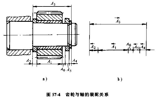 如圖57-4所示的齒輪與軸的軸向裝配關(guān)系簡圖,裝配后要求保證齒輪與熱圈之間的軸向間隙A