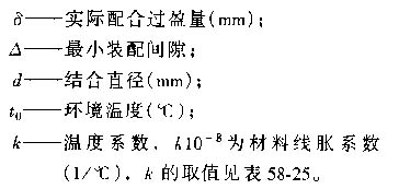 2)零件加熱溫度應考慮零件的材料、結(jié)合直徑、過盈量和熱裝的最小間隙等因素,可按下式確定: