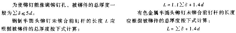 鉚接有冷鉚和熱鉚兩種方式。前者為形狀鎖緊連接,一般直徑大于10mm的鋼鉚釘加熱到1000~1100℃進行熱鉚,釘桿上的單位捶擊力為650~800MPa。后者為力鎖緊連接,直徑小于10mm的鉚釘可在常溫下冷鉚,用于不太重要的或受載不大的連接。