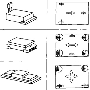 表50-16所示的是幾種自動導(dǎo)向車的傳動和轉(zhuǎn)向方式