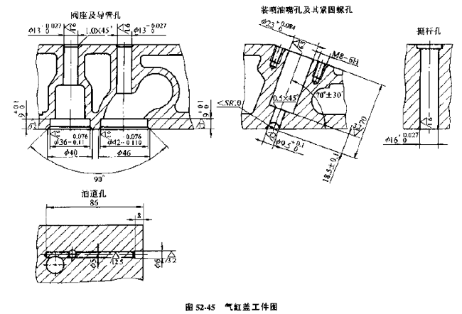 鉸導(dǎo)管孔、鉆緊固噴油嘴螺孔的底孔 |