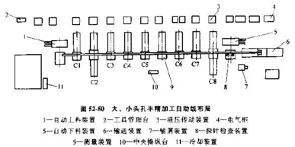 表52-20 連桿加工組合機(jī)床自動(dòng)線(xiàn)的工藝過(guò)程