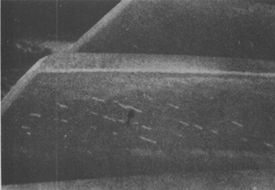 輪齒承載面下邊的齒根過渡曲面處出現(xiàn)的疲勞裂紋。