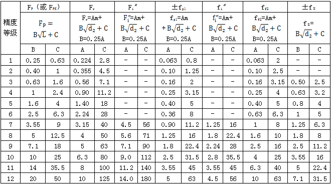 注:①當(dāng)三個公差組的精度等級不同時,按最高精度等級確定公差。