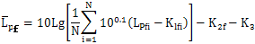 Klfi——第i測點上的頻帶背景噪聲修正量,dB;