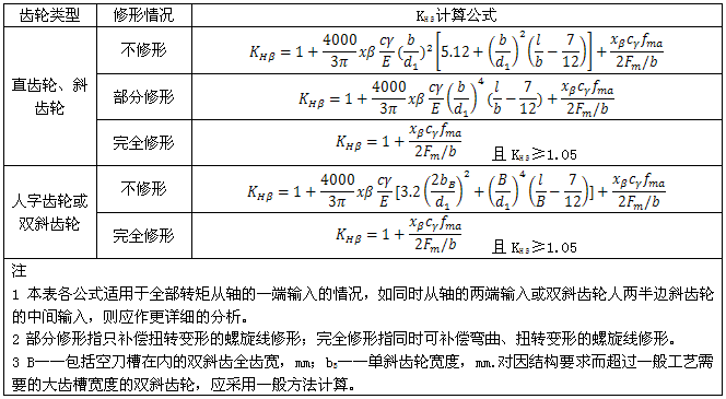 在無(wú)法按上述方法確定KHβ時(shí),可按本標(biāo)準(zhǔn)提供的下述兩種方法——一般方法或簡(jiǎn)化方法近似計(jì)算齒向載荷分布系數(shù)。