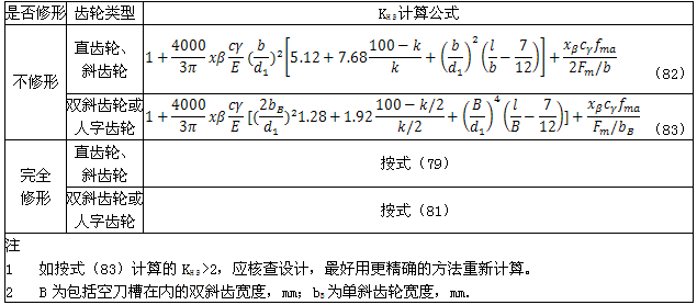 式中:KHβ——接觸強(qiáng)度計(jì)算的齒向載荷分布系數(shù),見(jiàn)6.3.2或6.3.3;