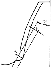 1)30°切線的切點(diǎn)應(yīng)位于由刀具齒頂圓角所展成的齒根過渡曲線上;