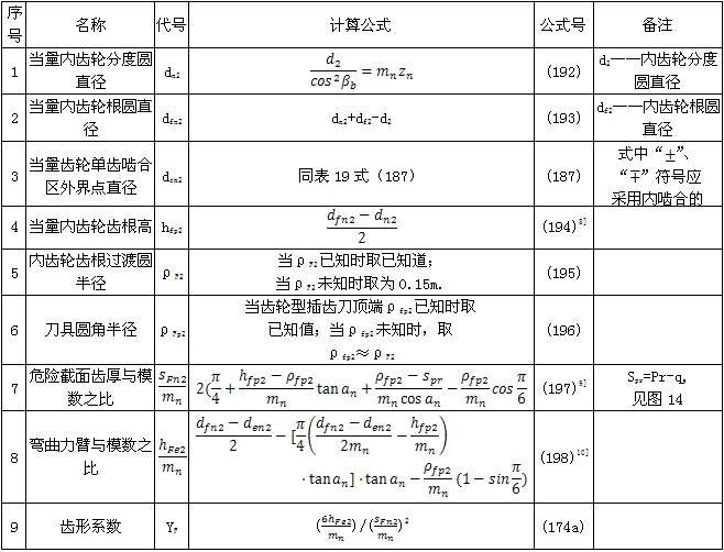 表20 內(nèi)齒輪齒形系數(shù)YF的有關(guān)公式