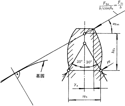 齒形系數(shù)是用以考慮齒形對名義彎曲應(yīng)力的影響,以過齒廓根部左右兩過渡曲線與30°切線相切點(diǎn)的截面作為危險(xiǎn)截面進(jìn)行計(jì)算。