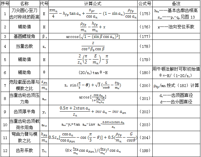 ρF——30°切線切點(diǎn)處曲率半徑。外齒輪由式(182)計(jì)算,內(nèi)齒輪由式(195)計(jì)算。