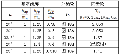 與圖18a18e各齒形參數(shù)相對應(yīng)的內(nèi)齒輪齒形系數(shù)YFa也可由表23查取。