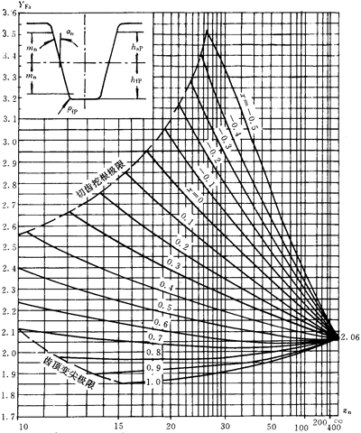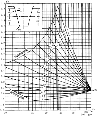 式(199)適用于εan<2的標(biāo)準(zhǔn)或變位的直齒輪和斜齒輪。大、小輪的YFa應(yīng)分別確定。