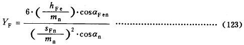 hFe——彎曲力臂。外齒輪由式(137)計算,內齒輪由式(142)計算。