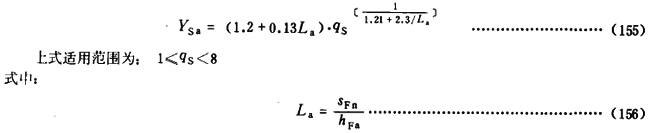 對于齒形角αn為20°的齒傳輸線,YSa可按式(155)計算。對于其他齒形角的齒輪,可按此式近似計算YSa。