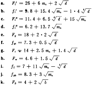 B2.1本附錄規(guī)定的有有傳動項目的公差或極限偏差的計算式、數(shù)值如下: