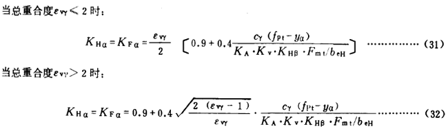 齒間載荷分配系數(shù)是考慮同時(shí)嚙合的各對(duì)輪齒間載荷分配不均勻?qū)佑|應(yīng)力(以KHα計(jì))和彎曲應(yīng)力(以KFα計(jì))產(chǎn)生影響的系數(shù)。