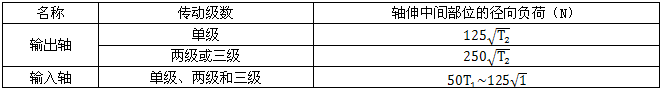 ④減速器的結構設計應考慮在輸入軸和輸出軸軸伸中間部位的徑向負荷不低于表8-184數(shù)值(專用減速器除外)。