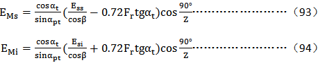 對量柱測量齒距(M值)偏差的測量結(jié)果ΔEM應用設計圖樣規(guī)定的量柱測量距極限偏差EMs、EMi對其進行評定。當設計圖樣未作規(guī)定時,應將圖樣規(guī)定的齒厚極限偏差Ess、Esi按公試(91)、(92),(93),(94)換算為EMs、EMi;也可以將測得的ΔEM按公試(95),(96)(97),(98)換算為ΔEss、ΔEsi,用Ess、Esi對其進行評定。