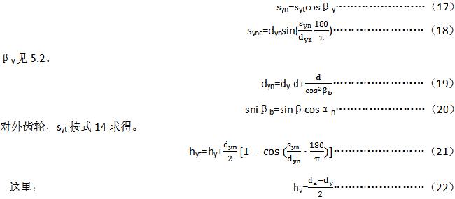 控制相配齒輪的齒厚是十分重要的,以保證它們在規(guī)定的側(cè)隙下運行。有些情況下,由于齒頂高的變位,要在分度圓直徑d處測量齒厚不太容易,故而用一個計算式給出在任何直徑dy處齒厚s,見圖16,推薦選取dy=d+2mnx。