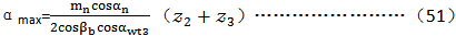在下面求αmin的公式中,用αwt3作為最小壓力角是一個近似的方法,如時需要更為精確的結(jié)果,可用式49或工50和αmin重新計算,取得最后的數(shù)值。