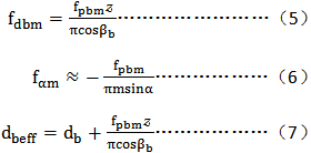 平均法向基圓齒距偏差fpbm,平均基圓直徑偏差fdbm、平均壓力角偏差fαm和有效基圓直徑dbeff有以下關(guān)系: