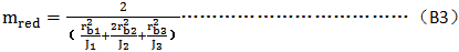 此時(shí),內(nèi)齒圈的當(dāng)量質(zhì)量按外齒輪處理,行星齒輪的誘導(dǎo)質(zhì)量按式(B2)計(jì)算。當(dāng)內(nèi)齒圈與幾個(gè)行星齒輪嚙合時(shí),按B1.3c)處理。
