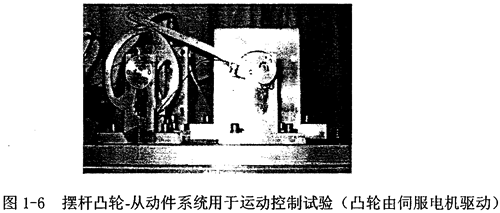 姚燕安作了凸輪機構(gòu)的主動控制的研究以及凸輪機構(gòu)與伺服控制系統(tǒng)的集成研究,基于以最佳控制理論導(dǎo)出改善凸輪從動件系統(tǒng)運動特性以及抑制其殘余振動的轉(zhuǎn)速軌跡的設(shè)計方法,其實驗系統(tǒng)如圖1-6所示,由伺服電機驅(qū)動擺動從動件平面凸輪機構(gòu)。