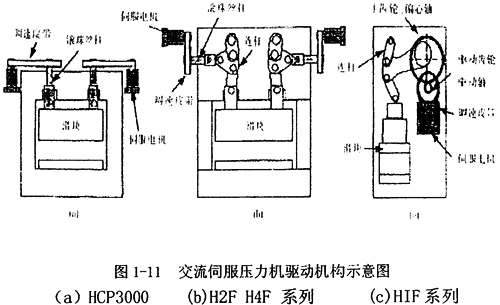 日本komatsu公司設(shè)計了一系列用伺服電機驅(qū)動的機械壓力機H1F(見圖1-13)和H2F,并已推向市場。這一設(shè)計解廖了傳統(tǒng)機械壓力機不能控制的問題,壓力機可根據(jù)不同的生產(chǎn)需要設(shè)定不同的行程長度和速度;通過伺服壓力機標配的線性光柵尺,能夠始終保證下死點的成形精度,可達到微米級,有效抑制了產(chǎn)品的毛刺及其他不合格品的出現(xiàn);可超低速運行;模具振動小,大大提高了模具的使用壽命;但造價昂貴,能耗也大。