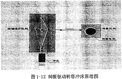 日本Muratec公司采用伺服驅(qū)動系統(tǒng)來改善轉(zhuǎn)塔式?jīng)_床的工作性能等,如圖l-12,采用伺服馬達控制沖頭的工作方式實現(xiàn)了較同類機械高出150%的沖壓速度,同時通過對軸速度的最佳設(shè)定,抑制了振動,大幅度降低了沖壓音量。