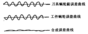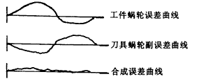 2. 周期誤差抵消,如果測出插齒機兩套蝸輪副的周期誤差(即蝸桿誤差)大,而兩套蝸輪的齒數(shù)zfc和zf又不相同,這時可選定z/zc=zf/zfc,使得兩套蝸桿的周期變得相同,再配合儀器調(diào)整其相位相反后固定。這樣,在以后的運動過程中蝸輪副的周期誤差值將被抵消絕大部分(圖4)。