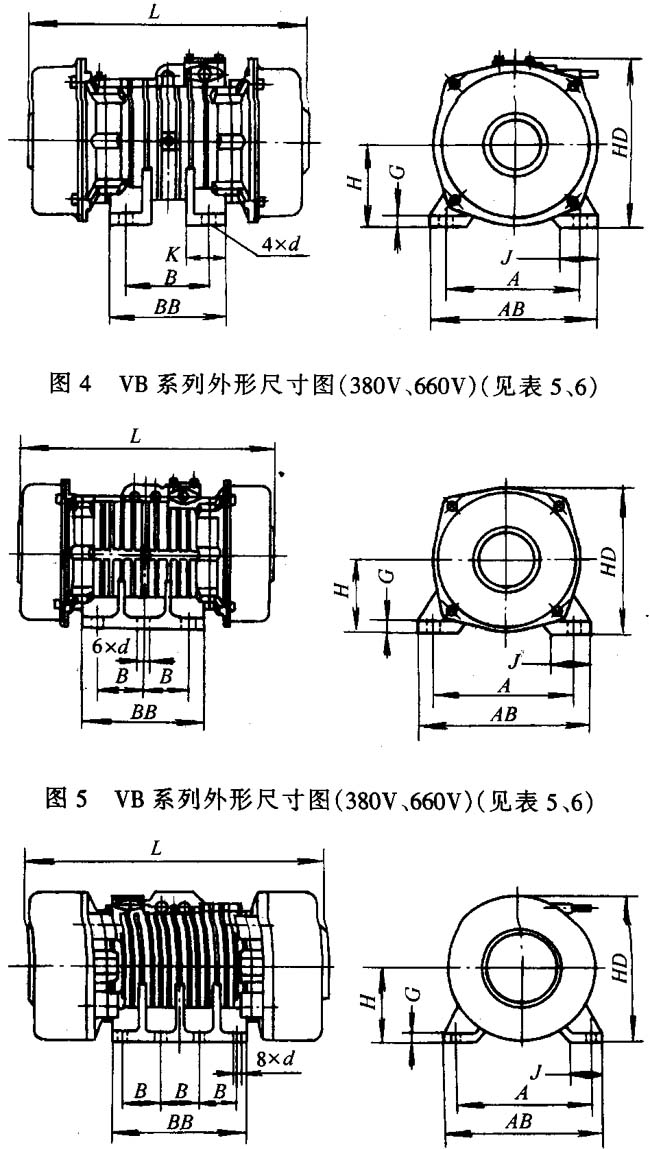 VA、VB系列振動三相異步電動機外形及安裝尺寸