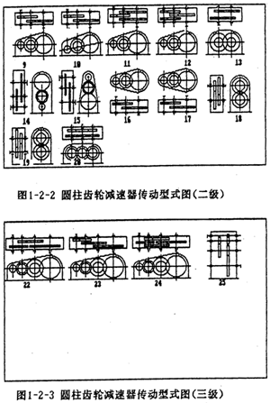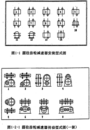 在工礦企業(yè)及運(yùn)輸、建筑等部門中,圓柱齒輪減速器是一種應(yīng)用極為廣泛的重要部件。通用型減速器,作為一種工業(yè)產(chǎn)品,規(guī)格較多,產(chǎn)量頗大。與此同時,在使用部門中還經(jīng)常需要設(shè)計一些能滿足特定要求的專用減速器。為適應(yīng)市場瞬息多變的要求,國家在“七五”期限間,將重型機(jī)械基礎(chǔ)件作為24項CAD攻關(guān)產(chǎn)品之一,并將減速器作為重型機(jī)械基礎(chǔ)件的代表。由西安重型機(jī)械研究所(后簡稱西重所)提供的專家系統(tǒng)文本中減速器的類型如下(圖1-1、圖1-2-1、圖1-2-2、圖1-2-3)。